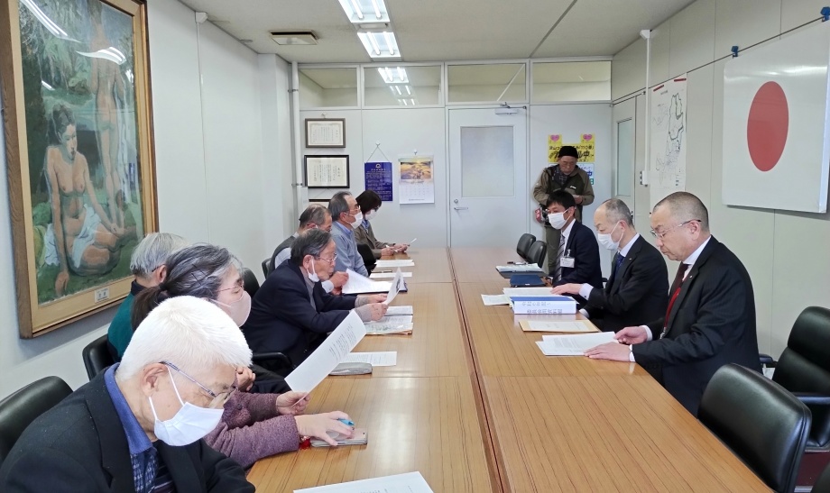 ★午後2時30分の予定が、少し遅くなりまして、津山誌へ訪問、地域振興部長らが対応してくれまして、申し入れの趣旨は市長に伝えますといういつものセリフです、遅刻したことのお詫びもでした。