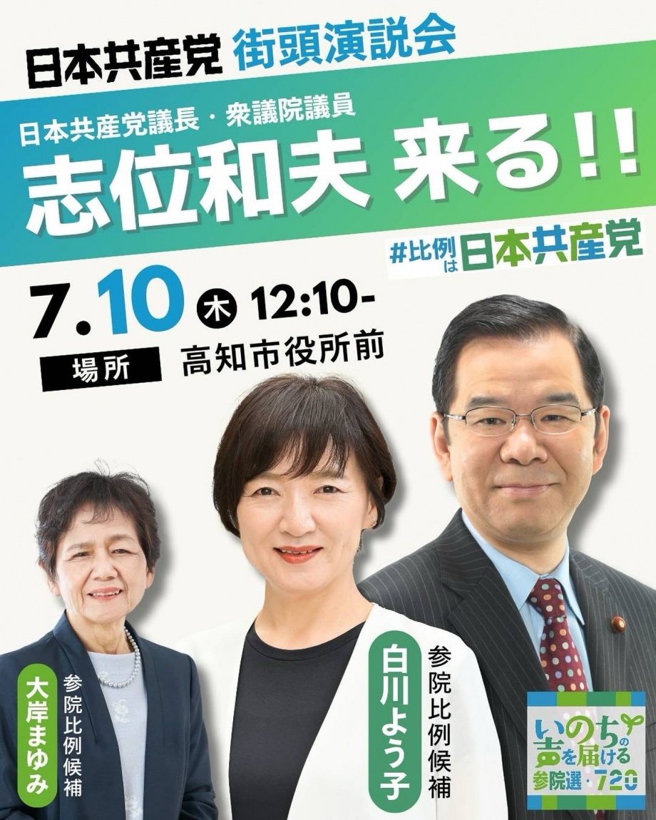 高知市、松山市で、志位和夫議長といっしょに訴え。