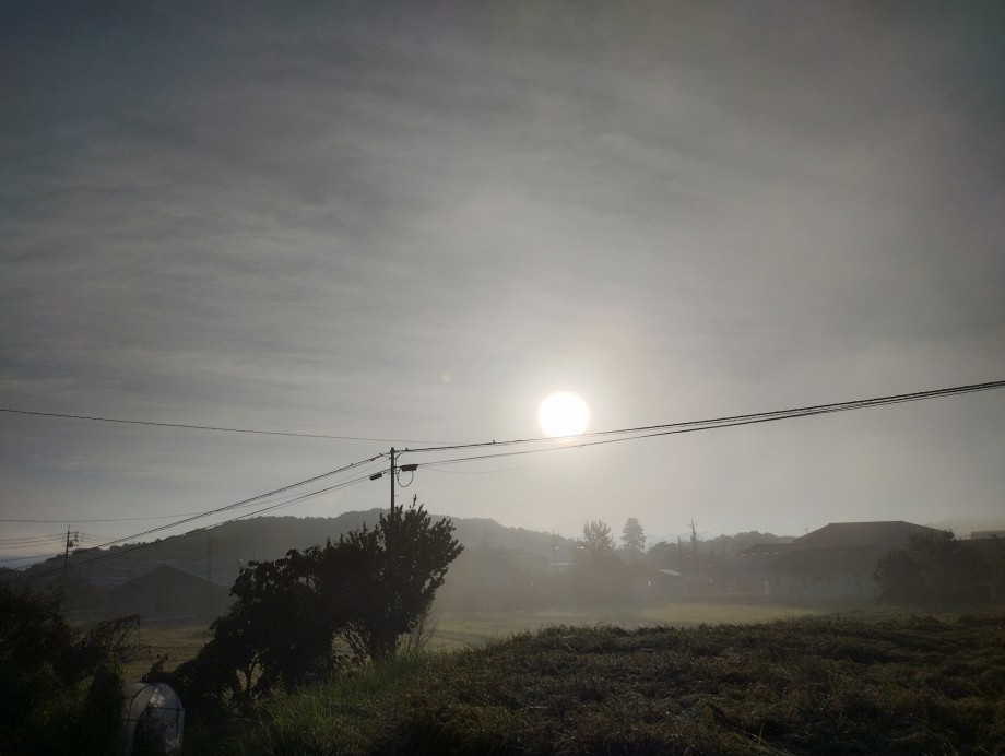★これでも、9月、?、秋、無茶な暑さでした。土曜日、8日は、朝から、太陽がのぞいて暑くなりそうでした。朝、散歩の道中、6時27分の写真。