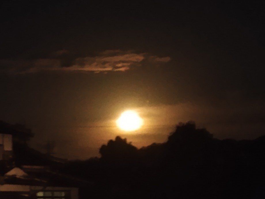 ★車に乗って帰る道中のお月さんがとてもきれいでしたから、スマホで1枚撮りまして、帰ってからも、我が家の庭付近で何枚か撮りました。昨夜が満月で、その前が中秋の名月でしたから、満月の次の日のお月さんは何と呼ぶのでしょうかね。