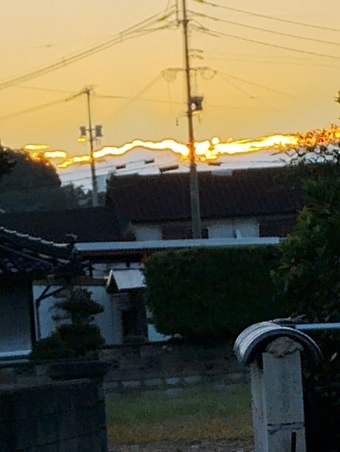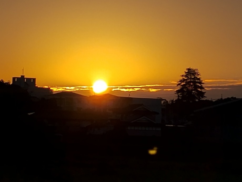 ★というのが原因かな、かなり寒い朝でした。今朝の6時28分頃からの東の空、日の出でした。