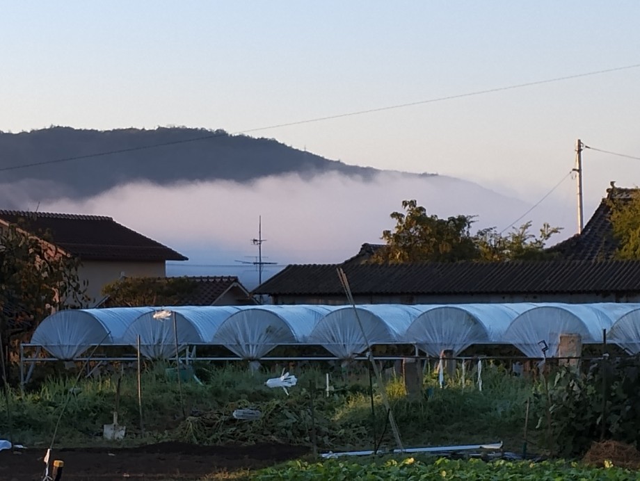 ★ここ数日、あさが「寒い」です、下着を冬用に帰るかなです。年のせいかな、足元が寒いです。今朝、雲のない空、霧が山沿いには多くありました。本当、寒くなりました。