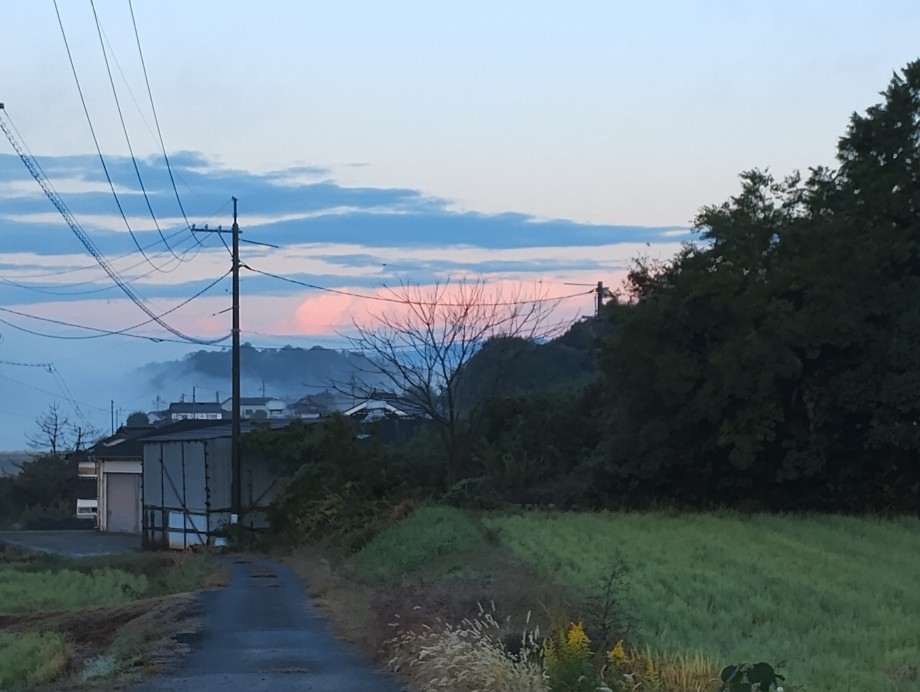 ★今朝は、雨は上がっていますが、まだ曇っています、空気は無茶に見寒いというのではなく、サリと他、暖かいわけでもありません。いつものように、6時30分に散歩に出発、靄と曇り、そして、だんだんと明るくなる東の空、