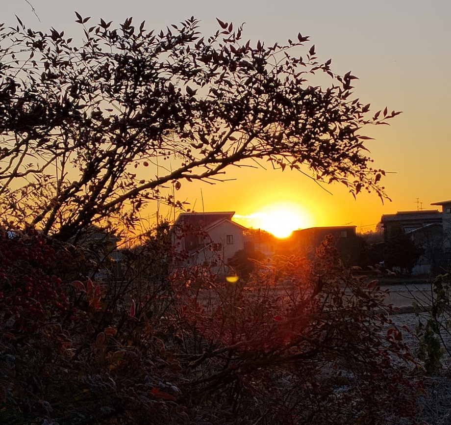 ★今朝は、あまり冷えていません、7時15分頃までの東の空、太陽さんが顔出す直前までてしたかな、綺麗な朝焼けの空でした。