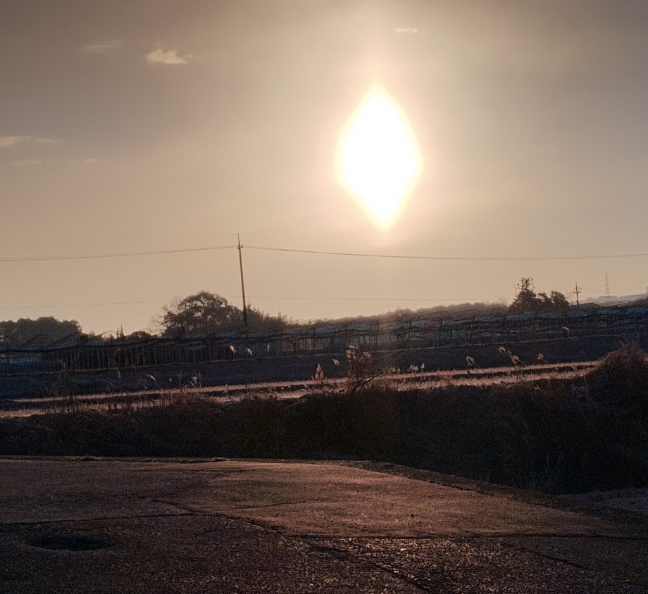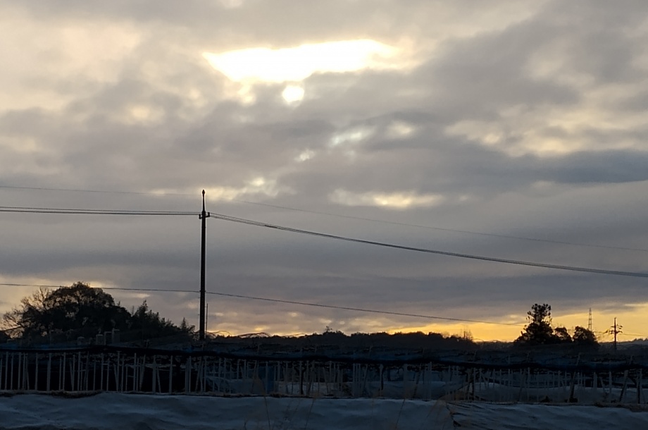 ★今朝は、日曜版の配達と併せた散歩道、冷たい空気ですが、よく晴れていまして、1日暖かくあってほしいの願いの朝です。7時40分頃の東の空です。かなり、日の出が速くなり、太陽さんも、北に寄ってきましたね…太陽さんが寄ったのではなくて、地球の軸が春に向かって動いているというのが正解、でも、難しく言わない、北に動いたいますね、、、です。