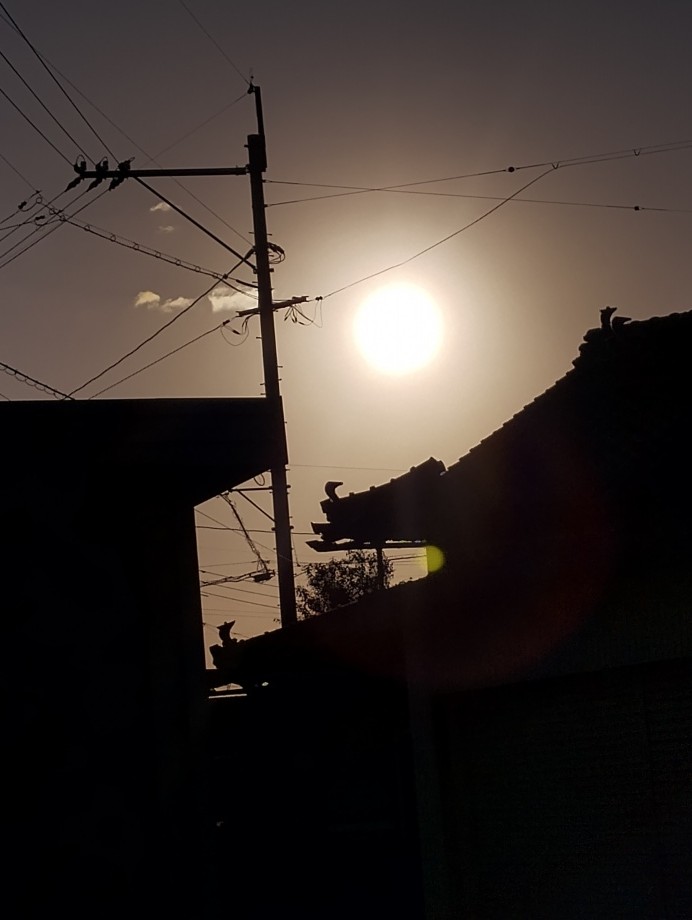 ★朝、7時35分前後、雲一つ見えない空、太陽さんが綺麗に輝いています、冷えた朝、放射冷却というのでしょうか、よくわかりませんが。。。真をとる位置が悪くて、太陽が寫せませんでしたねという写真です。