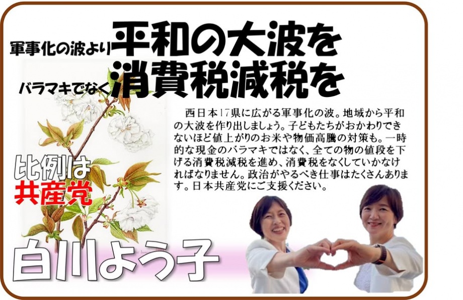 ★四国・中国・九州・沖縄の人は、格別に、この人へ…政党の名前も、個人の名前も有効です。全て日本共産党の票に加算されていきます。。。