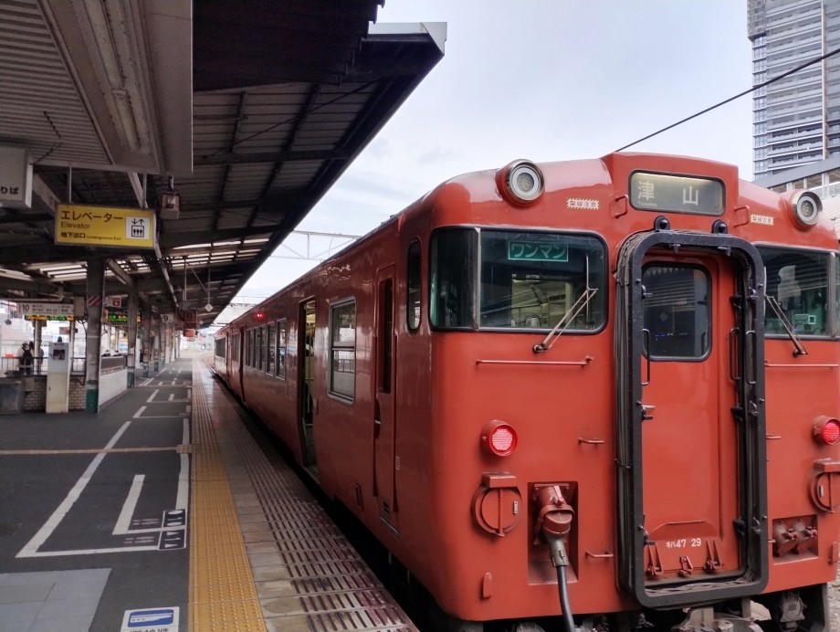岡山発は16時27分で津山着17時57分でした。