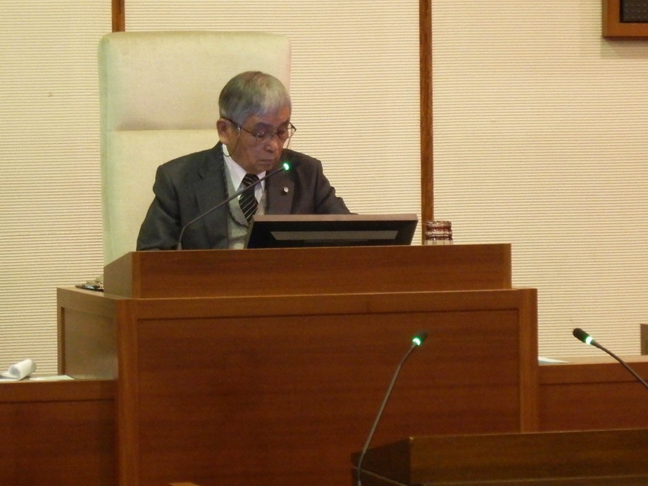 ★昨日は、1日暖かいと感じる、心地良い1日でした。今朝も、8時前、霧の中、曇った感じですが、暖かくなりそう・・・昨日の午前中は、津山圏域資源循環施設組合議会・2月定例会でした。私は議長役、質問ができませんで、写真は、議長席の私です。